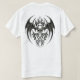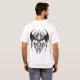 A powerful, symmetrical tribal emblem featuring a detailed human skull at its center. The skull is flanked by large, stylized bat wings with a dark, leathery texture. Below the skull, intricate, sharp-edged tribal linework creates a jagged, throne-like base. The entire design features a weathered, obsidian stone-and-metal texture with soft highlights