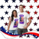 T-Shirt dos EUA 2024. Números e Letras Descritos em Red Trump em frente à bandeira americana. Mostre seu apoio e pegue um para um amigo.