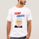 Caricatura do Presidente Donald Trump com texto TRUMP AMERICA em excelente ole American Red and Blue.