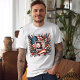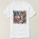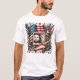 Trump & Vance 4 de Julho Dia da Independência Camiseta. © Camisetas & Suéteres na Zazzle. Esta camiseta do Dia da Independência tem um design da bandeira com vermelho, branco e azul e com uma imagem de P. Trump e VP. Vance no centro.