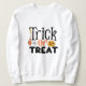 Trick Or Tratat Halloween Sweatshirt A família moderna que combina com a camisa do Halloween design apresenta o texto "Trick Or Tratat Halloween" em letras laranja e branca com um pequeno sotaque fantasma. Encomenda cada membro da sua tripulação.