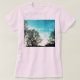 Uma fotografia original de um belo e nítido céu azul, emoldurado pelos silhouttes escuros das árvores. Sublinhado por um fluxo de jato está a clássica citação de Beatles "Tudo que você precisa é amor."