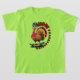 The design depicts a cartoon turkey riding a skateboard, with the words "Happy Thanksgiving" written in red around it. The turkey is wearing a blue baseball cap and is standing on a skateboard, with its legs extended in front of it. It has brown feathers with a colorful tail featuring yellow, black, and red hues. The turkey is looking to the left with a playful expression.
