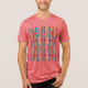 Um padrão de azulejo vertical, simétrico, inspirado nos estilos mediterrânico, nativo-americano e design de arte sudoeste, é composto por linhas de formas geométricas em coral e uma laranja ferrugem profunda com turquesa. Foto aqui em uma camiseta Tri-Blen "vermelha" Bella+Canvas na Impressão Viva, com outras cores e estilos disponíveis, é uma adição criativa, polida e colorida ao seu visto casual, cotidiano (para atividades do trabalho/escola ao esporte, relaxando/socializando/correndo pelas cidades), mas também trabalha para ocasiões um pouco mais difíceis, dados os temas artísticos e contribui para um sentimento de ser "unido", com um estilo personalizado. Especialmente para aqueles que trabalham remotamente e/ou passam muito tempo em casa, vestir pode ser divertido novamente.