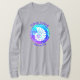 Ilha Tybee, camisa de concha Georgia. Uma bela concha é enquadrada dentro de uma esfera colorida de azuis vibrantes, púrpuros e verdes.
