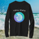 Camisa de concha da Georgia de Tybee Island. Uma bela concha de estilo é emoldurada dentro de uma esfera de belos blues, púrpuros e verdes.