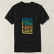 the shirt feartures the phrase OUR TIME HAS VALUE in astylized blockey font