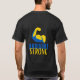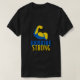A design de camiseta escura flexionou um gráfico de músculo bicep com texto forte da Ucrânia em cores azul e amarela da bandeira ucraniana. Slava Ucraniano!