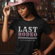 Celebre a última rodeo da noiva com esta camisa de despedida de solteira com tema de cowgirl ocidental. Com um texto estiloso inspirado em saloon e uma paleta de cores rosa, preto e branco, é uma escolha divertida para uma noite das meninas ou fim de semana de despedida de solteira. Personalize com o nome da noiva e detalhes do evento para um presente personalizado!