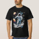 Astronauta rodeado na lua cercado por planetas e estrelas