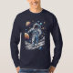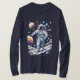 Astronauta rodeado na lua cercado por planetas e estrelas