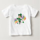 Um bebê T-Shirt com uma Ilustração de um lindo e feliz duende sorridente e dançante, ele está vestindo um terno verde e um chapéu de cima e está cercado por salpicos de cor arco-íris Um design perfeito para celebrar o Dia de São Patrick, desenhado por Radka2D