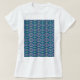 Camiseta Um padrão simétrico de motivos azuis num tecido