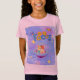 Um design de camiseta vibrante e lúgubre com um gato cartoon sentado dentro uma bolha transparente com a frase "Não se concentre no Perder" em letras corajosas e coloridas acima. O fundo é uma cena espacial balbuciana com estrelas, planetas e uma galáxia em espiral, apelando ao senso de maravilha e aventura das crianças.