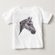 Uma imagem artística em tons de cinza, em estilo gráfico, que retrata um retrato da cabeça de um cavalo. Só uma beleza equina.