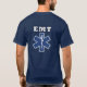 O roupa personalizado de EMT é perfeito para a identificação do desgaste ou da cena da estação. Na parte dianteira da camisa é "EMT" acima de uma estrela azul da vida e na parte traseira está o mesmo símbolo do salvamento do EMS em um tamanho maior.