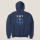 O roupa personalizado de EMT é perfeito para a identificação do desgaste ou da cena da estação. Na parte dianteira da camisa é "EMT" acima de uma estrela azul da vida e na parte traseira está o mesmo símbolo do salvamento do EMS em um tamanho maior.