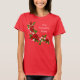 Camiseta básica vermelha feminina com a imagem de um belo elemento decorativo de rosa vermelha com flores brancas, corações brancos e diamantes. Texto opcional. Veja toda a coleção de Roupa de Dia das Mães nos TOUCHES ESPECIAIS | Seção Favoritos para festas.
