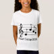 T-shirt do acampamento da banda da menina com texto customisable e um design simples de uns funcionarios musicais pretos e notas da notação musical em um clef de triplo contra um fundo inteiramente customisable. Este design é perfeito para um músico ou um estudante ou um melómano da música em qualquer lugar.