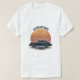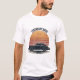 Um design de camiseta retrógrada com o perfil lateral elegante do Porsche 911, colocado contra um plano de fundo circular com tons de gradiente quente. Linhas horizontais finas e uma textura levemente angustiada acrescentam uma sensação vintage, perfeita para os fãs de carros desportivos clássicos e eterno de design .