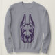 Este design é um close-up da Universidade em Albany Great Dane mascot head. A ilustração usa contornos roxos ousados com sombreamento detalhado em cinzas para a face do Grande Dane, destacando suas características angulares. Os olhos são afiados, e a expressão transmite alerta e força. Acentos de ouro aparecem em ambos os lados da mandíbula do cão, acrescentando um toque de calor à aparência feroz do outro jeito. Os ouvidos estão erguidos e pontiagudos, reforçando o sentido de prontidão e autoridade do logotipo. O design é mínimo, mas poderoso, ideal para a identidade atlética da UAlbany.