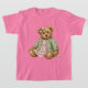 Camiseta Ursinho num vestido cor-de-rosa e cardigã verde
