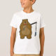 Camiseta Urso na pesca com vara de pesca e peixe