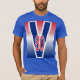 Camiseta V 80 com vitória de fundo azul-vermelho