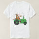Uma vaca dirigindo um trator verde. Esta design parece realmente eficaz nesta Camisa Mens