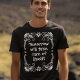 Easily add your favorite text or saying to this customizable T-shirt. The text, text color and the color of the surrounding floral pattern are all customizable. Current text, which can be kept if desired, reads "Tomorrow will take care of itself!"