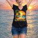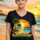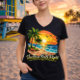 This tropical ocean sunset design captures the relaxing feeling of warm beaches, palm trees, and colorful evening skies along the coast. The vibrant island scenery reflects peaceful travel moments that remind many people why Vacation Feels Right. Across the United States, beach lovers enjoy clothing inspired by ocean views, tropical sunsets, and summer adventures near the water. This women's V-neck tee blends everyday comfort with vacation style, making it perfect for casual outfits, beach trips, travel days, and relaxed weekends. The lightweight cotton fabric offers breathable comfort while the sunset artwork adds a fun coastal vibe. Created by FreeFit for US shoppers who enjoy seaside destinations, palm trees, and warm summer evenings when Vacation Feels Right.