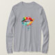 Este design de camiseta apresenta um par de lábios grandes, levemente abertos, pintados em tons de aquarela vibrantes, evocando uma sensação de diversão, festas e férias. A paleta colorida inclui tonalidades de turquesa, rosa quente e amarelo, com manchas de branco para um toque de verão. O efeito geral é ousado e atraente, perfeito para fazer declaração em qualquer festa ou em qualquer férias de praia. Esta design capta o espírito descuidado e aventureiro do verão, e com certeza vira cabeças onde quer que vista.