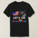 Um slogan político popular, "Vamos Go Brandon" e FJB com a bandeira americana e uma bandeira de corrida de carros, e uma ilustração única do cabelo soprado de Donald Trump.