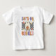 Vamos, Ghouls! Baby T-Shirt Um design de Halloween alegre, com um fantasma amigável com uma cesta de abóbora, rodeado de flores sorrindo e um pano de fundo retrô controlado. O texto vibrante "VAMOS OS FANTASMAS" adiciona um grito de protesto divertido para a diversão da temporada.