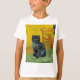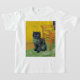 T-Shirt com um gato preto no estilo de Van Gogh! Esta gatinho preta senta-se sobre um chão verde sobre um fundo de decoração da Noite Estrelada. Um presente fabuloso para amantes de gatos e colecionadores de arte holandeses!