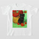 T-Shirt com um gatinho negro no estilo de Van Gogh! Um gatinho bonito se senta ao lado de um vaso com flores vermelhas. Um muro verde e um chão dão uma ambição primavera. Um presente fantástico para amantes de gatos e colecionadores de arte holandeses!