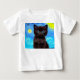 Baby T-Shirt com um gato negro na pintura de Van Gogh Starry Night! Este gatinho de olhos azuis brilha adoravelmente de um fundo de espirais azuis e uma lua amarela brilhante. Um presente fantástico para amantes de gatos e colecionadores de arte holandeses!