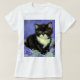 T-Shirt com um gatinho de smoking no estilo de Vincent van Gogh! Este gatinho bonito se posiciona com flores roxas. Um presente magnífico para amantes de gatos e colecionadores de arte holandeses!
