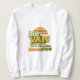 Viveiros de estrada de Groovy com borbulhante, listras quentes do pôr do sol, e uma carrinha de camper clássica em abacate e mostarda. Letras bolhas da década de 1970 lendo "VANtastic da vida"; ícone de van de campo de vintage; bandas de pôr do sol semicirculares; verde de abacate, amarelo de mostarda e paleta de creme; contorno suave.