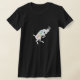 O t-shirt do Vegan com a silhueta bonito, feliz da cabra que pulam para a alegria e o "vegan" escrito no arco-íris coloriu letras.