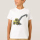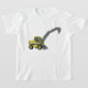 Um veículo de construção verde com um braço de escavação estendido. Esta design parece realmente eficaz nesta camiseta