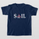 Ilustração de design de texto de vela com decoração de barco à vela em fundo azul escuro. É possível mudar a cor de fundo e adicionar uma diferente à design com sua escolha.