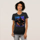 Velha bruxa feia com sorriso malvado com pássaro negro e vestindo chapéu de bruxa na T-Shirt. Estrelado noturno do Halloween.