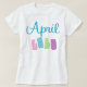 Anuncie a data de vencimento do seu bebê com esta diversão Vencida na design da maternidade de abril. Diversão do slogan da gravidez com April Baby design em cores bonito em uma camisa de dedo.