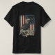 A design da camiseta "Verdadeiro Espírito Americano" apresenta um gráfico ousado, ao estilo vintage da bandeira Americana, com uma águia a voar sobre ela. O design é renderizado em uma paleta de cores angustiada, patriótica, vermelha, branca e azul, com uma textura áspera e angustiada que lhe dá uma sensação autêntica de eterno. As palavras "Verdadeiro Espírito Americano" são gravadas numa fonte forte e clássica debaixo da águia, celebrando o orgulho nacional e a resiliência.