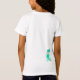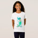 Uma sereia com cabelos azuis fluidos e uma cauda verde sobre fundo branco. Altere o nome da sua camiseta pessoal de sereia ou elimine o nome completamente.