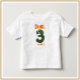 Design verde e laranja adoráveis com I AM TRÊS sob uma criatura animal que forma o numeral 3.