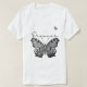 Uma camiseta na moda com uma ilustração moderna da borboleta em preto e verde-sábio, perfeita para sonhadores e amantes da natureza.