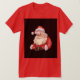 Um Papai Noel festivo está vestindo uma camiseta vermelha em vez de seu terno tradicional, dando um olhar casual e relaxado. A camiseta é um vermelho de Natal vibrante, com mangas curtas e um ajustado de nu. Papais noeis tem sua barba branca clássica e óculos redondos, suas bochechas rosadas brilhando com alegria de férias. Ele ainda está vestindo seu icônico chapéu vermelho, aparado com pele branca, e seu cinto preto com uma fivela de ouro ao redor de sua cintura. Ele emparelha a camisa com calças confortáveis, casuais, possivelmente jeans ou pregos, enquanto suas tradicionais botas pretas completam o olhar. O fundo apresenta decorações de Natal como luzes cintilantes, uma árvore e presentes embrulhados, somando-se à atmosfera de férias.