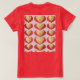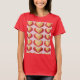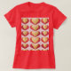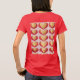 Luxe Dourado Red Hearts Red T-Shirt Esta é uma camiseta básica de mulheres, de cor vermelha e ouro. O design de corações foi criado com arte gerativa. O trabalho de arte apresenta corações vermelhos e dourados num fundo cor-de-rosa. A camiseta mostrada é uma camiseta vermelha. O design de corações está na frente e atrás da camiseta.